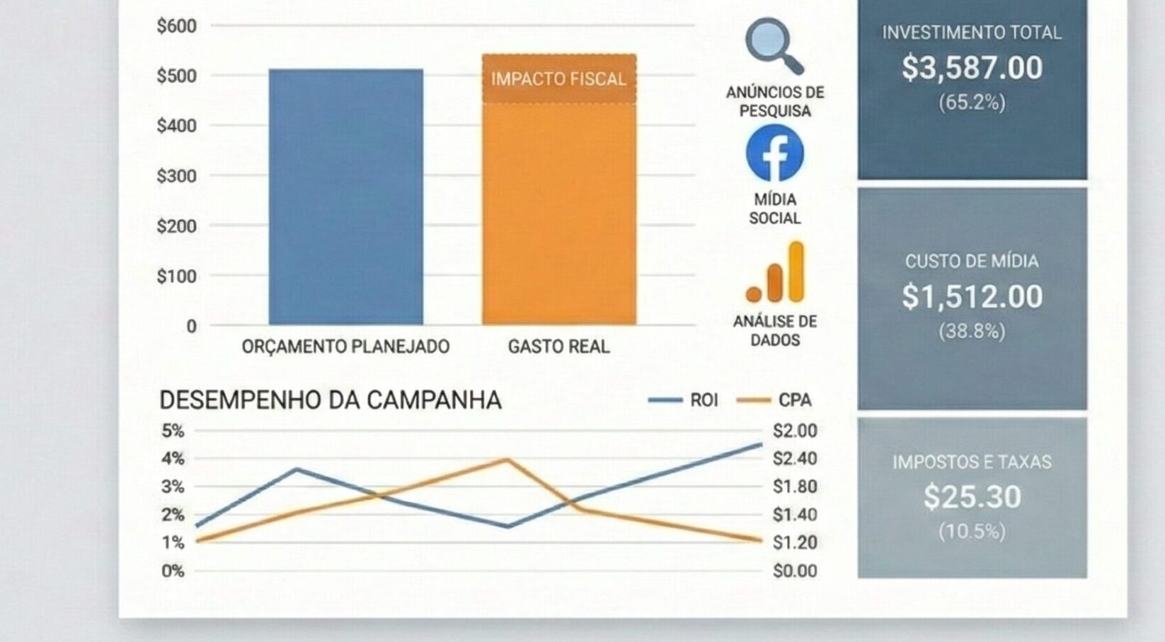 O que muda é o custo final real da mídia, aquele que sai do caixa da empresa — e não apenas o número exibido no Ads Manager.